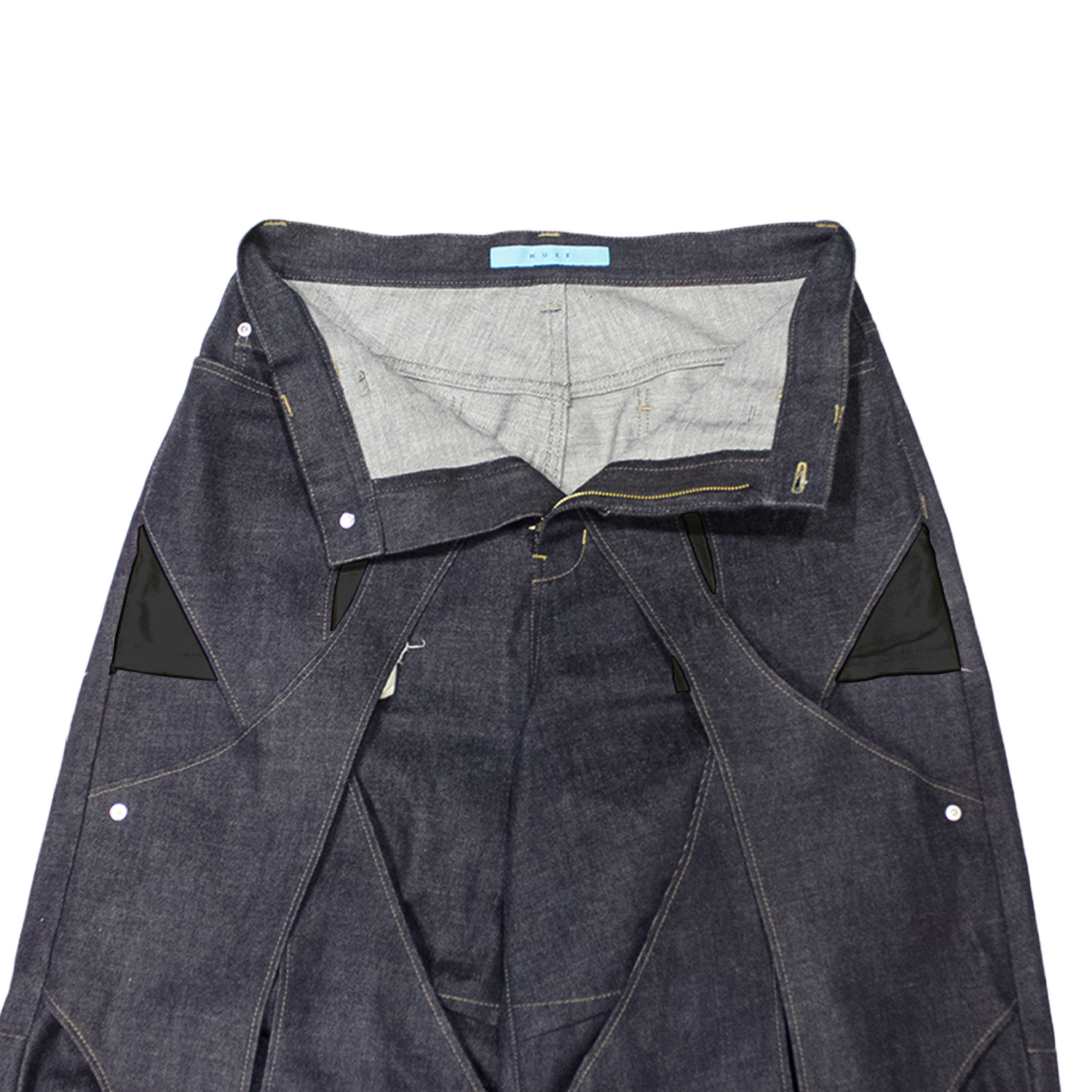 重なり合ったデザインが特徴のMUZE® 定番デニムパンツ。