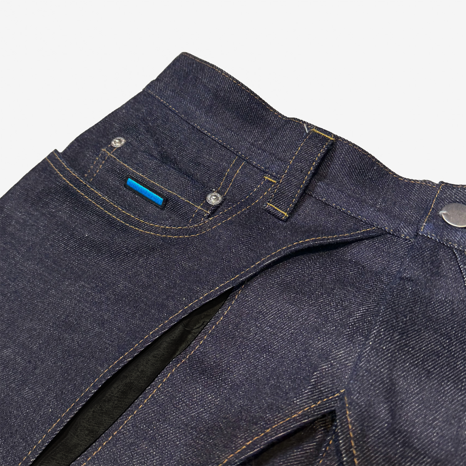 リジッドデニムを採用。着用により経年変化をお楽しみいただけます。